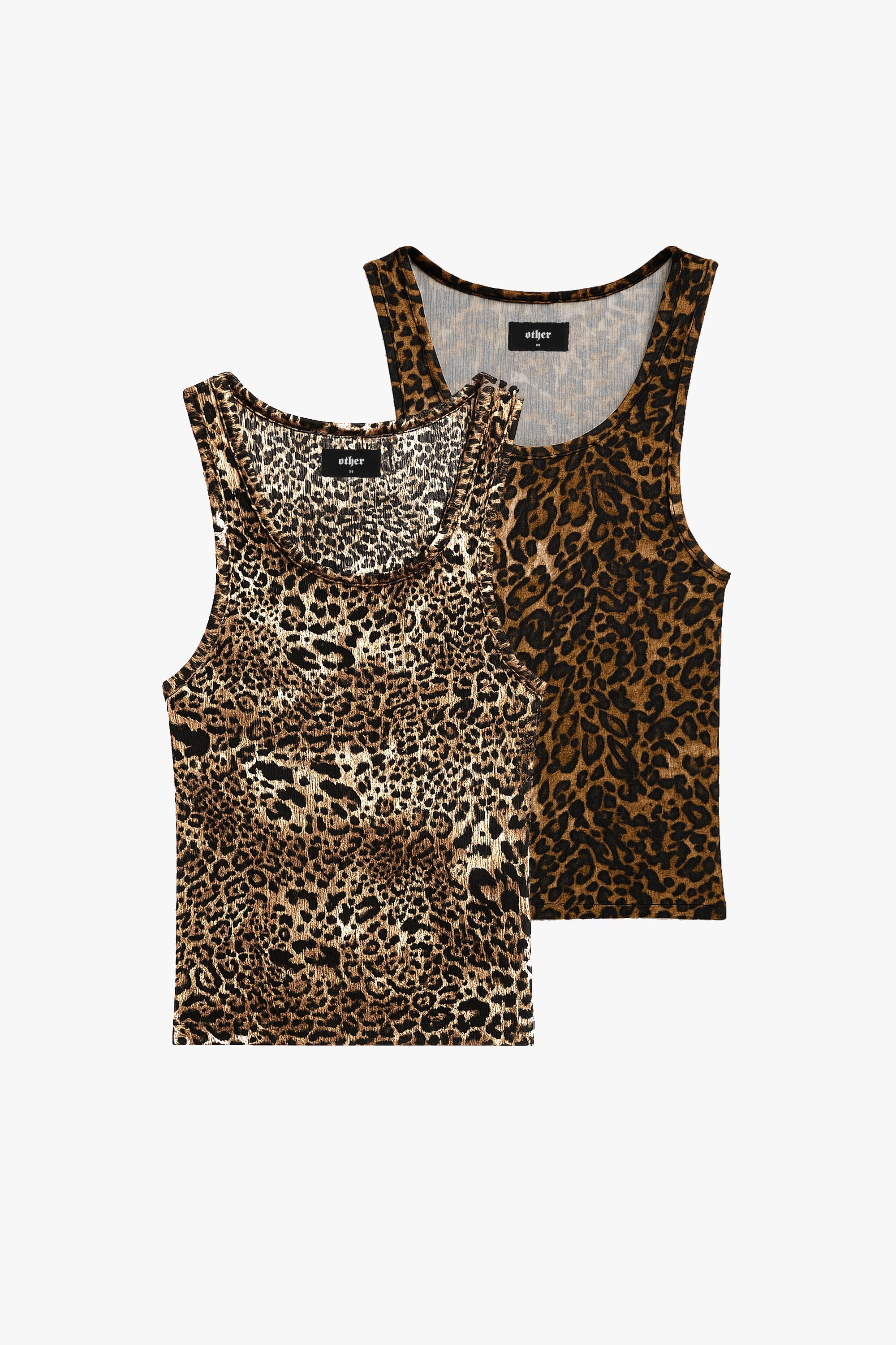 A sleeveless ribbed tank in vintage leopard print, cut slim for a close fit. Crafted from lightweight ribbed cotton, it’s built to layer or wear solo. The leopard pattern adds a bold rock and roll edge, perfect for pairing with leather pants or denim.