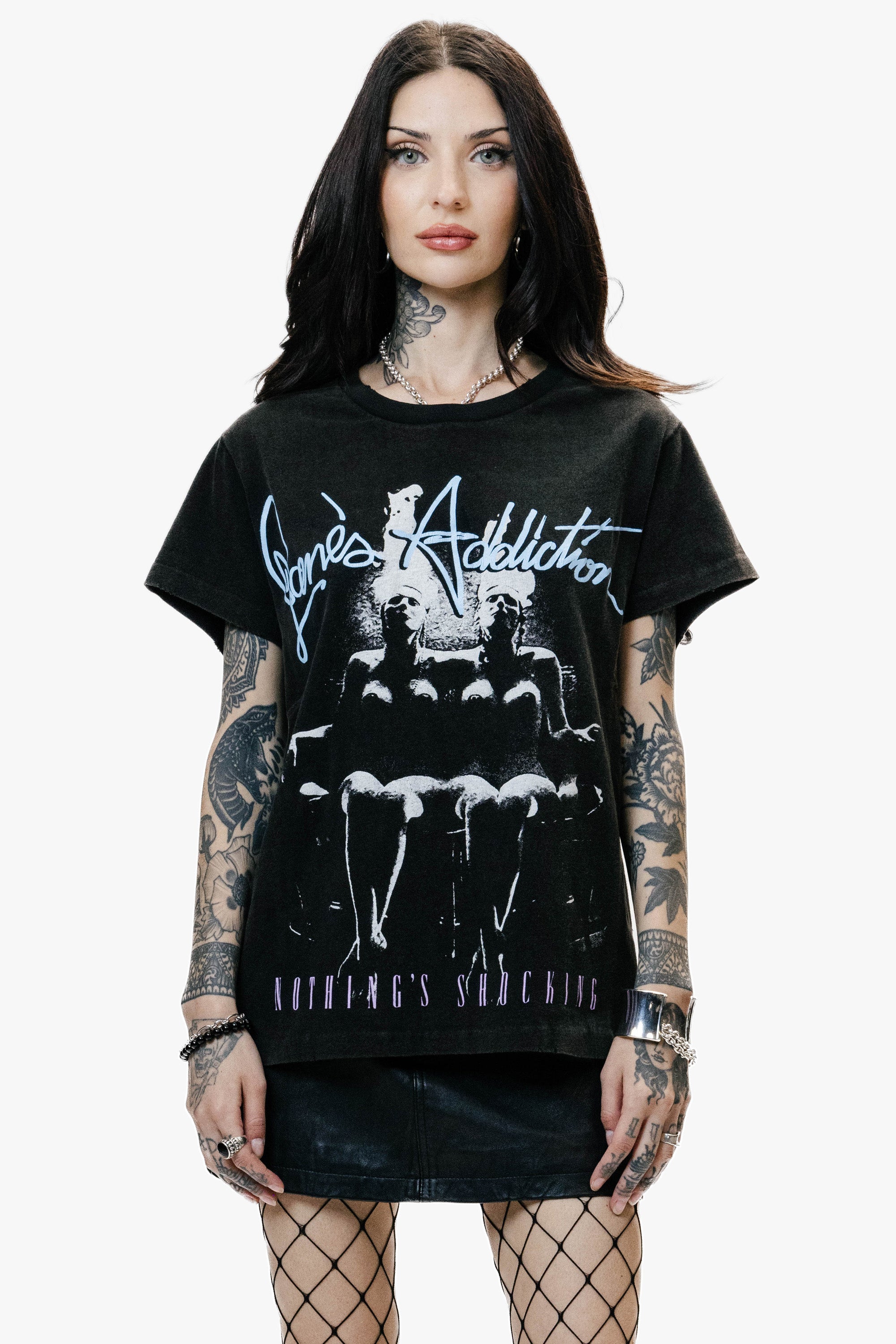 We’ve reimagined the iconic Nothing’s Shocking graphic from Jane’s Addiction’s legendary 1988 tour. The Nothing’s Shocking Vintage Tee is crafted with a classic crew neck and our signature relaxed fit, featuring perfectly finished single-stitch hems and meticulous stitch construction. The 80s-inspired graphic, hand-screen printed front and back, brings a rebellious touch of nostalgia. This tee combines the spirit of the era with the refined edge of modern design. A true statement piece for those who live on the edge.