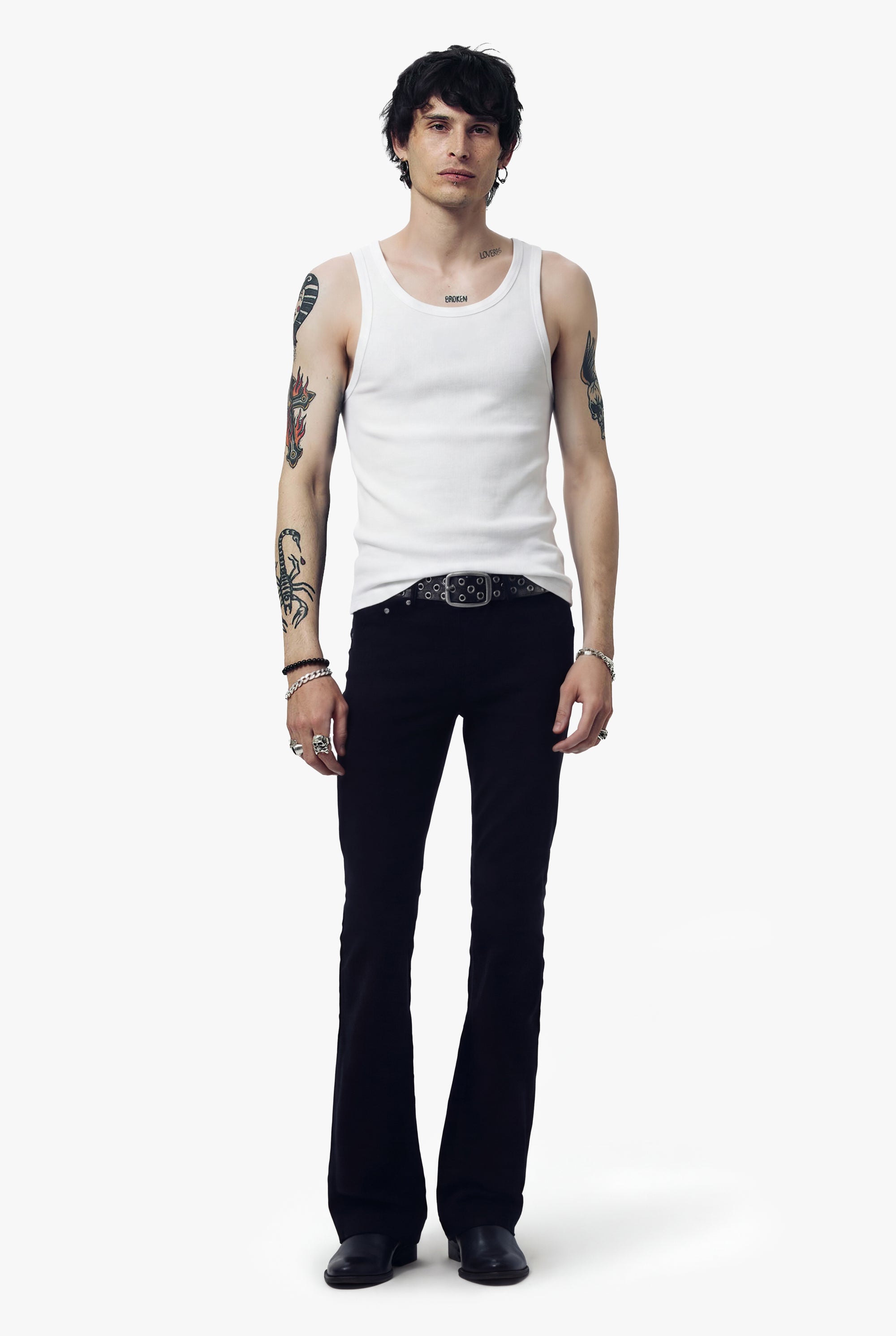 STILL HAND-PRINTED. STILL CRACKED. STILL STRETCHED TO PERFECTION. OUR CLASSIC FINISH DELIVERS THAT SIGNATURE LIVED-IN FEEL - RAW, REBELLIOUS, AND UNMISTAKABLY AUTHENTIC - MINUS THE RIPS AND TEARS.