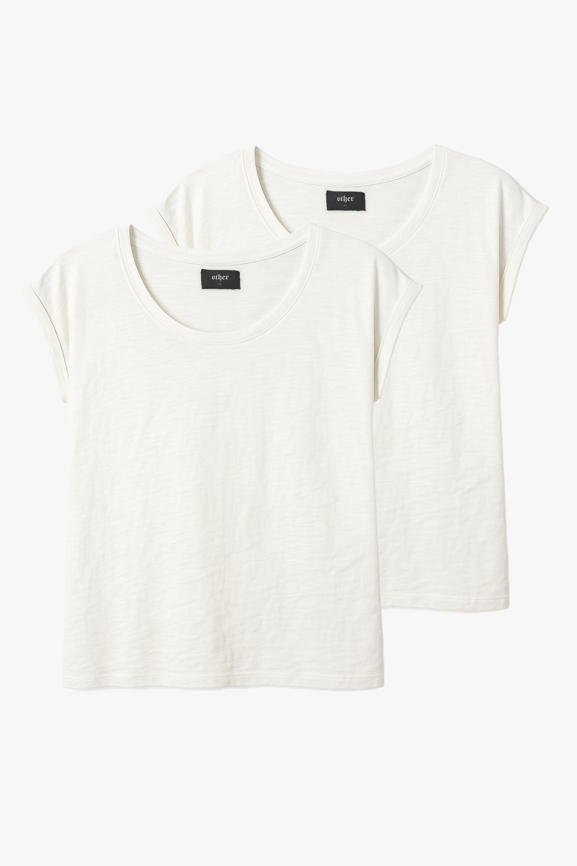The Lazarus Scoop Neck Tee is a slim-fitting style cut from a single-piece slub cotton body with no sleeve seams, giving it a clean, effortless drape. The rolled sleeves and bound scoop neckline add subtle structure while keeping a relaxed attitude. Crafted from a slightly sheer slub fabric that feels soft against the skin, it’s designed to sit close to the body and move naturally. Finished with side slits for comfort and a timeless white tone that works effortlessly with denim or leather. Bundle includes 2x Lazarus Scoop Neck T-shirt | Bone