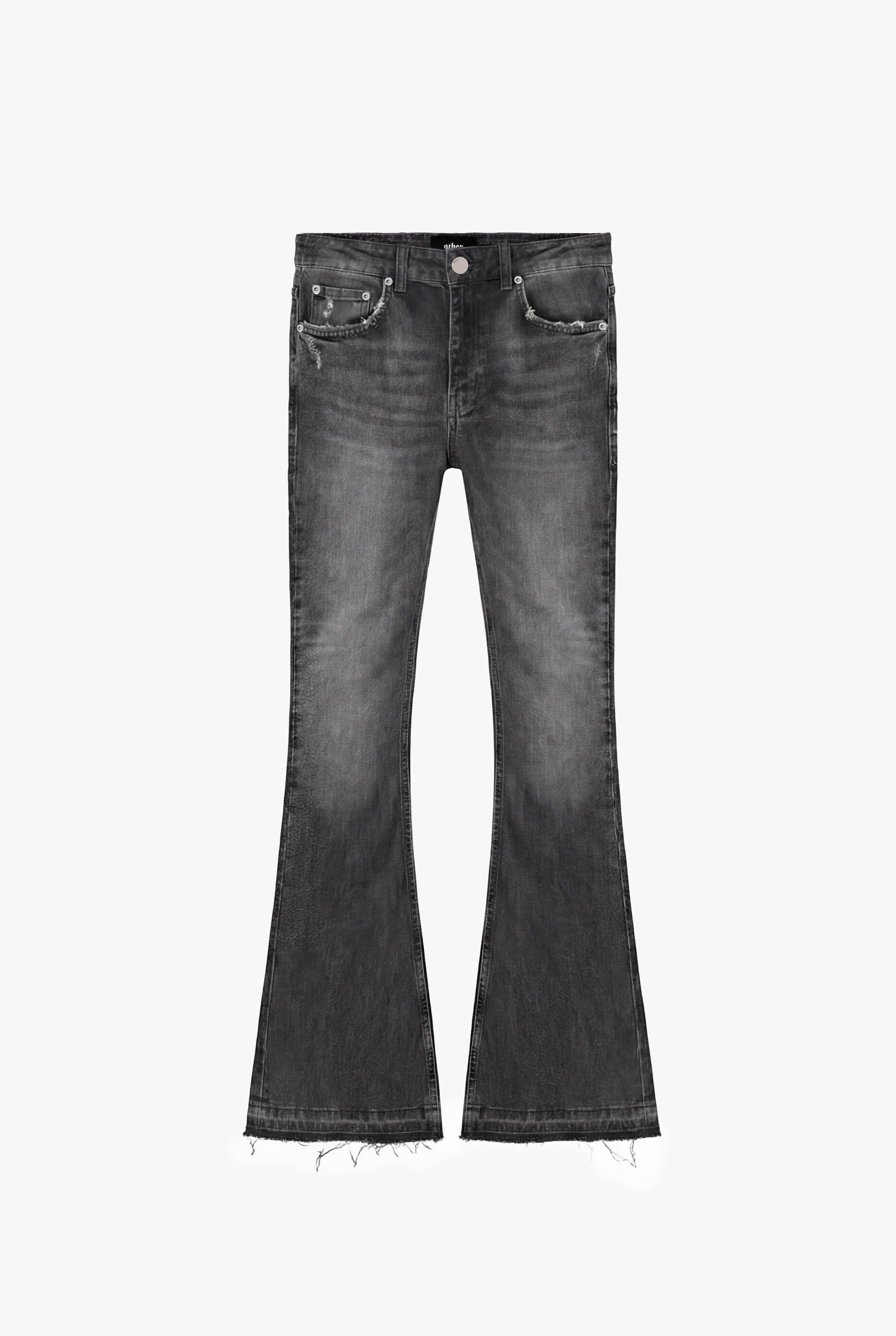 Slim fit flared jeans cut close through the hip and thigh, opening into a controlled 32cm Raw Edge ankle flare. Designed to create a long, sharp silhouette.