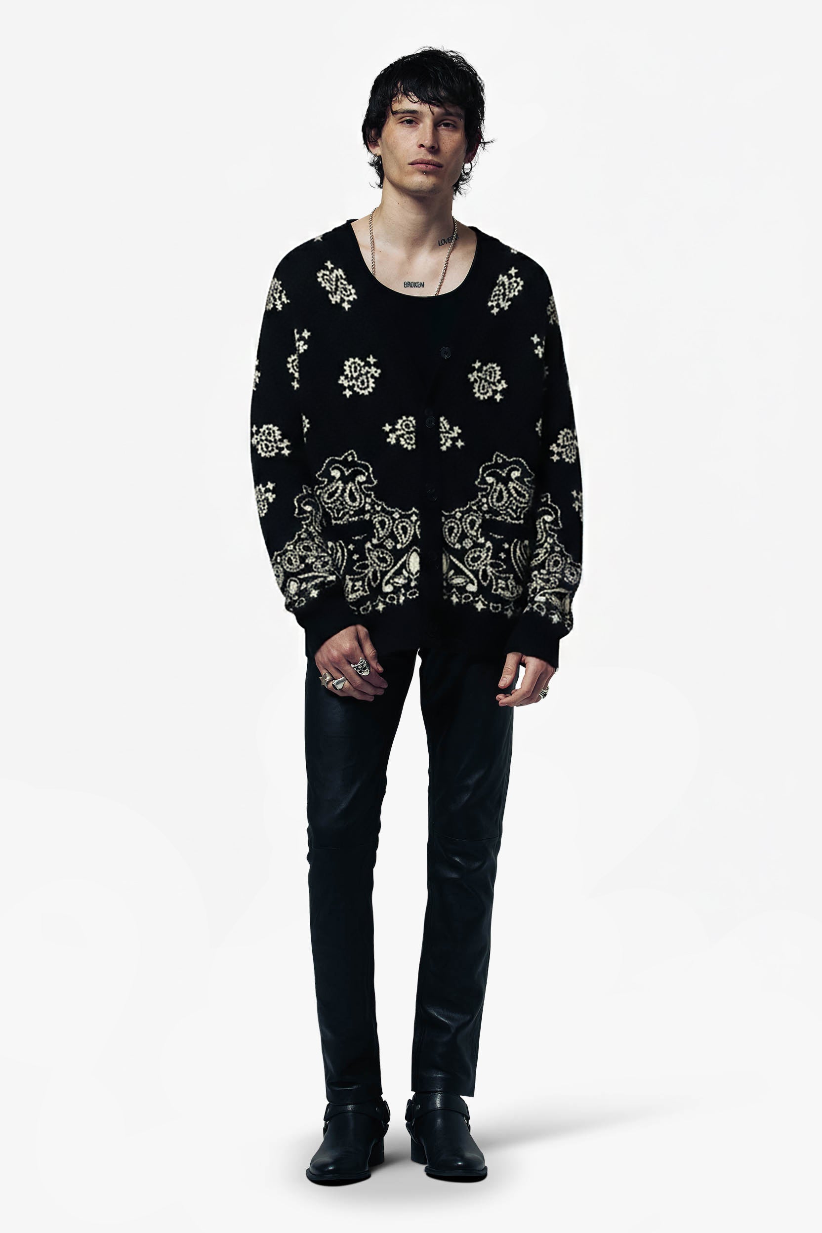 A soft wrecked luxury. This oversized mohair blend cardigan carries the spirit of a lived in classic with a bandana motif that feels iconic, romantic and slightly dangerous. Designed for effortless layering and that late night rock n roll ease.