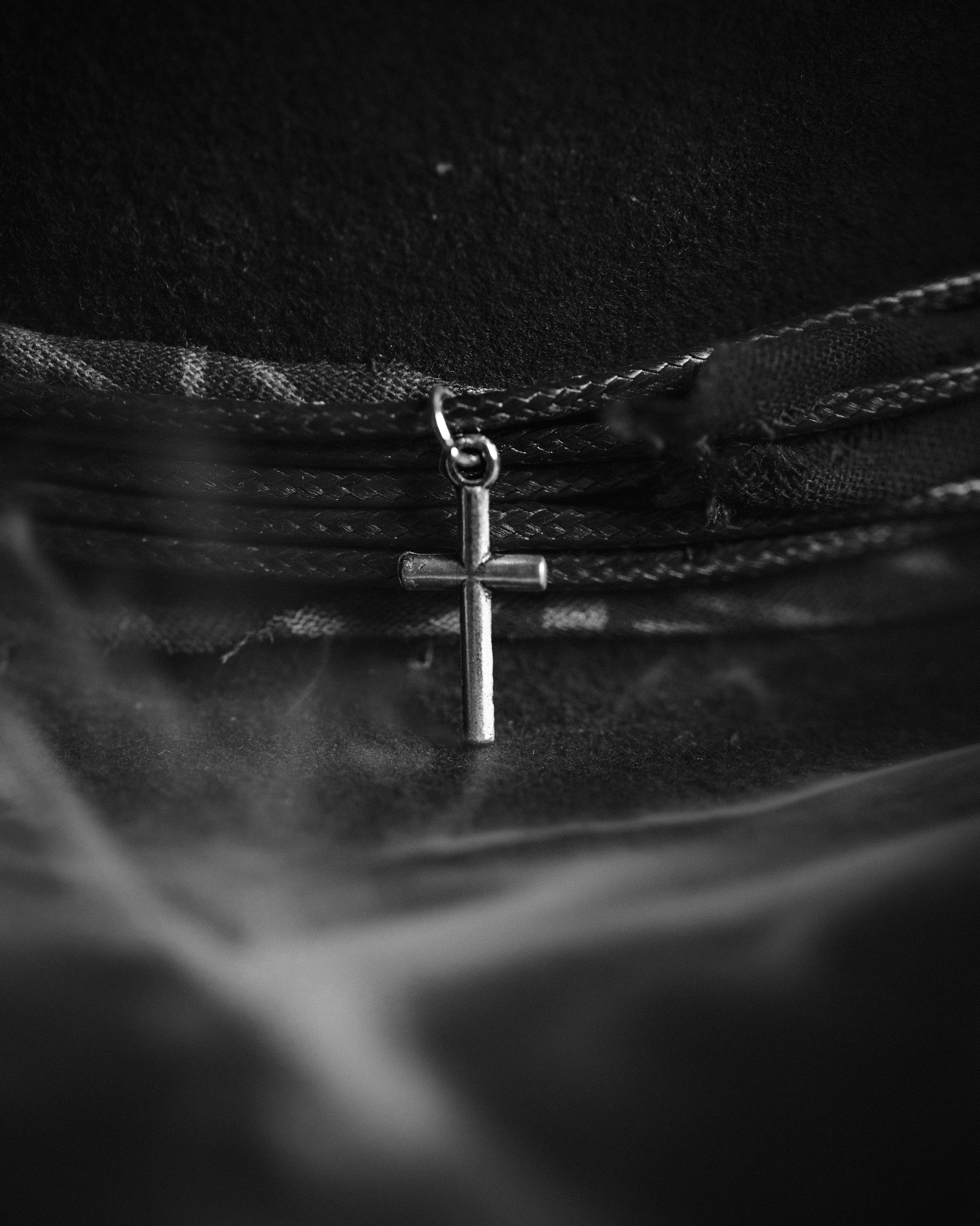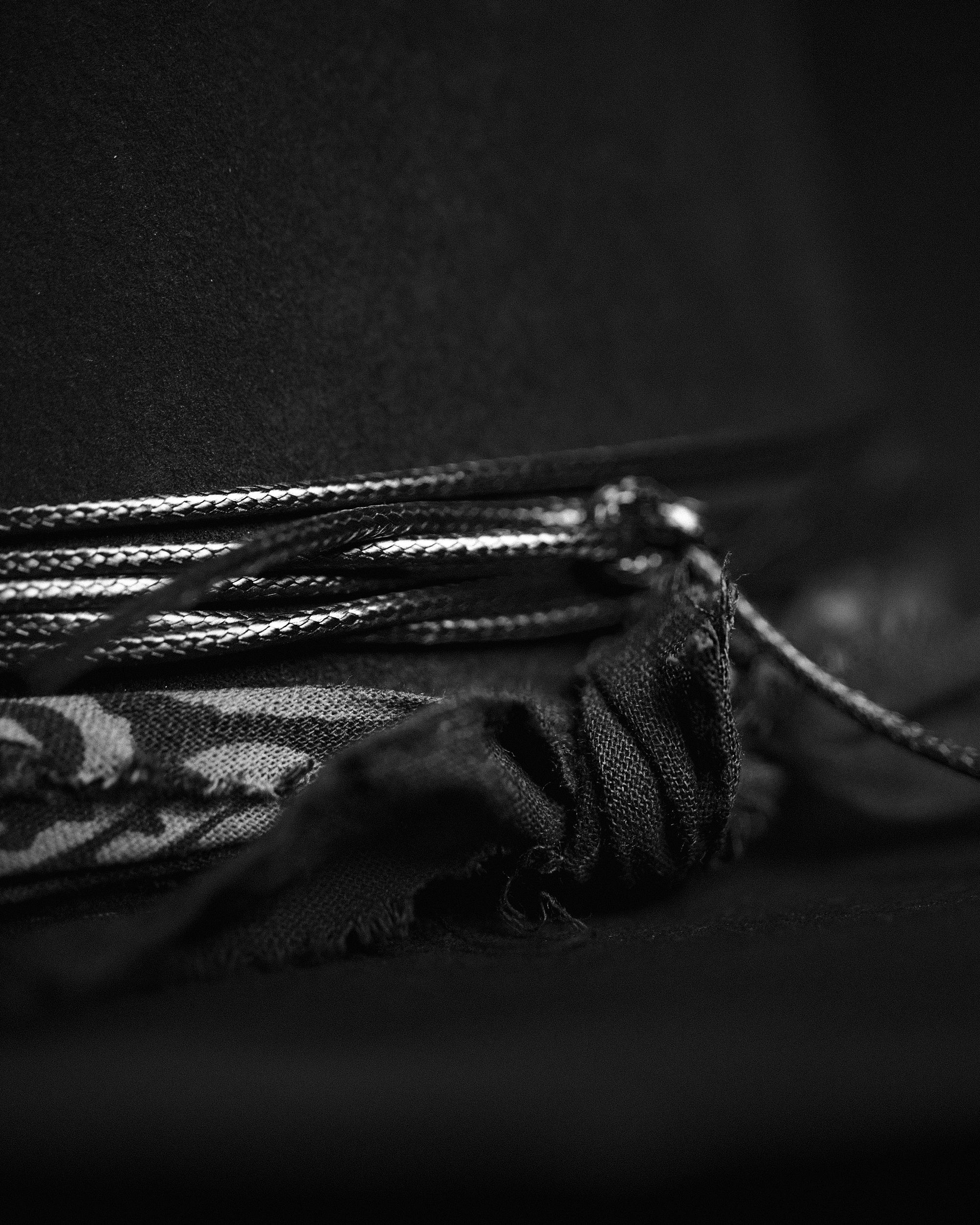 INTRODUCING THE OUTLAW COWBOY HAT, A CLASSIC COWBOY STYLE HAT THAT'S BEEN HAND CRAFTED FROM 100% MERINO WOOL.  FEATURING A STIFF BRIM & AN ADJUSTABLE FIT THE OUTLAW COWBOY HAT IS FINISHED WITH A DISTRESSED BANDANA, EMBELLISHED LEATHER ROPE, CROSS PENDANT & WORN OUT LOOK WHAT REALLY SETS THIS HAT APART IS THE BESPOKE CUSTOMISATION THAT EACH PIECE UNDERGOES. OUR SKILLED ARTISANS USE A COMBINATION OF AGEING AND FLAME RELICING TECHNIQUES TO CREATE A ONE-OF-A-KIND, PERFECTLY IMPERFECT FINISH THAT GIVES EACH HAT ITS OWN UNIQUE CHARACTER.