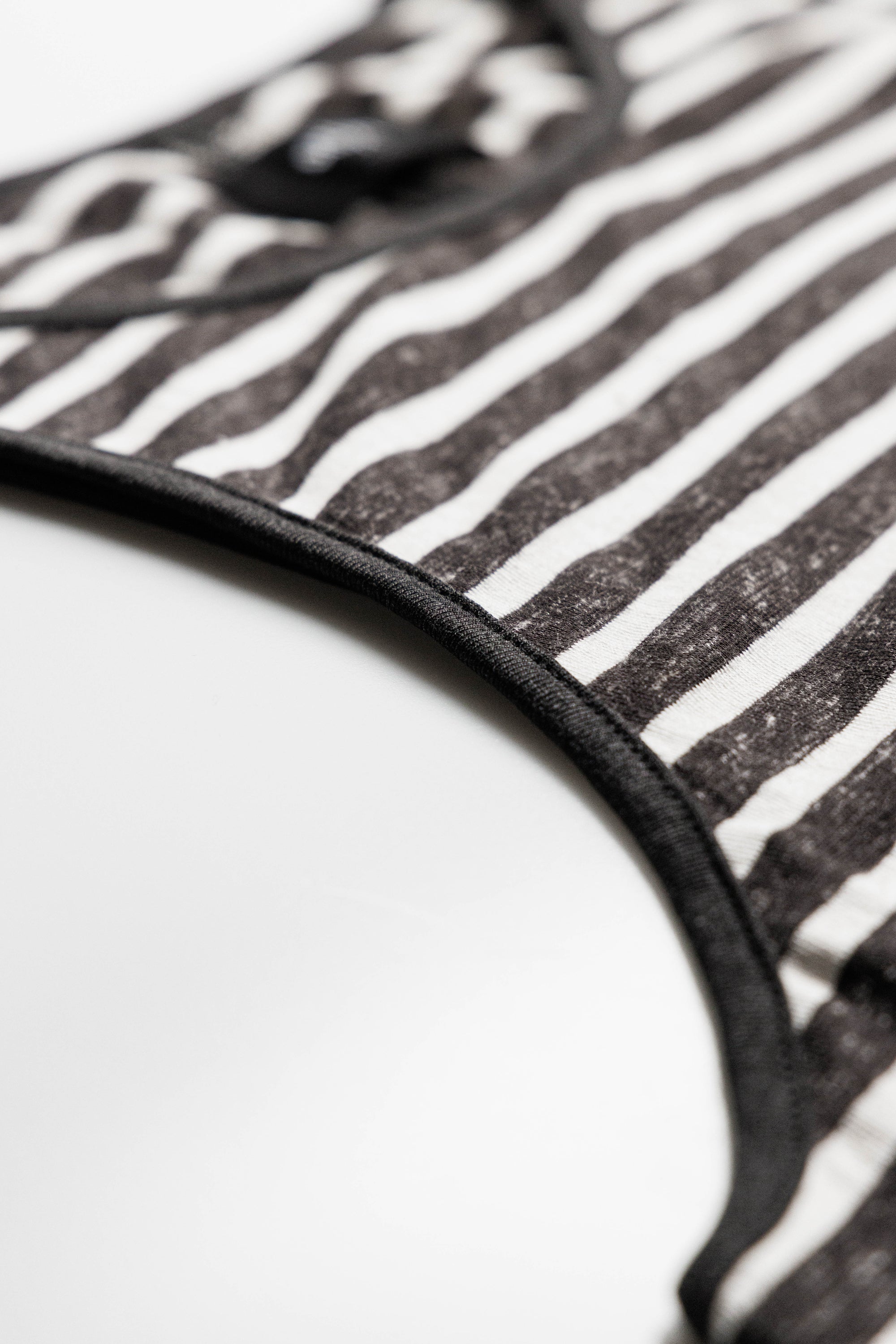 Crafted from a lightweight slub fabric that feels worn-in from the first wear, The Stripe Slub vest captures the raw, rebellious spirit of underground shows and late-night dives. With a fit that’s both relaxed and subtly tailored, it hangs effortlessly on the body, giving off a laid-back vibe. The self-fabric contrasting neckline and armholes add an extra edge, reflecting the indie sleaze look and the iconic attitude of The Ramones. Slip it on, crank up the music, and embrace the freedom.
