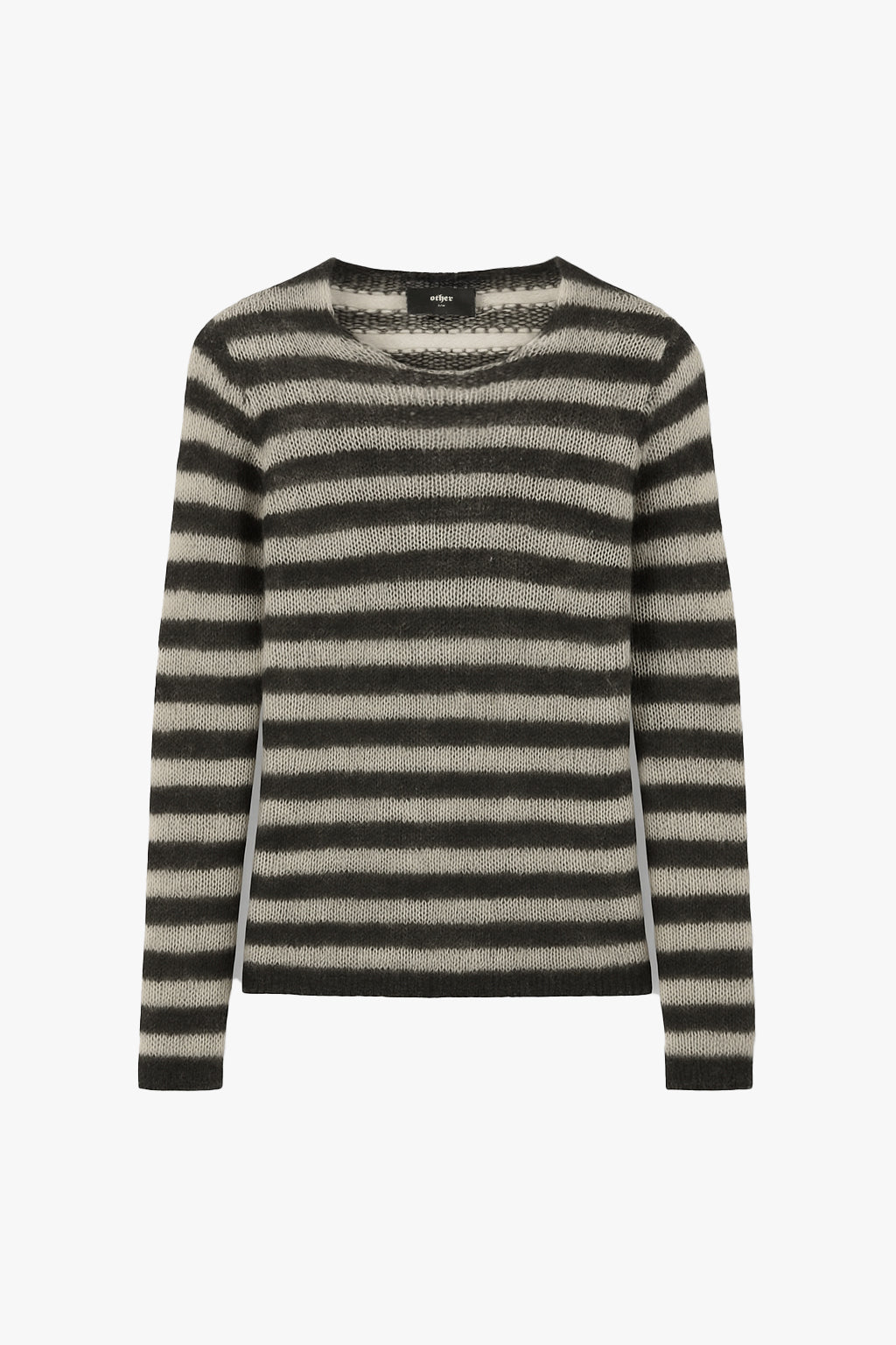 Crafted from a brushed wool and mohair blend, the Classic Stripe Jumper combines quiet luxury with a sharper, more refined silhouette. The slim fit cut elevates its understated edge, while the cast neckline lends a hint of effortless nonchalance. Finished in our signature black and dirty white stripes inspired by classic Ramones styling, it embodies modern sophistication with a subtle nod to rebellion, timeless, tailored, and effortlessly cool.