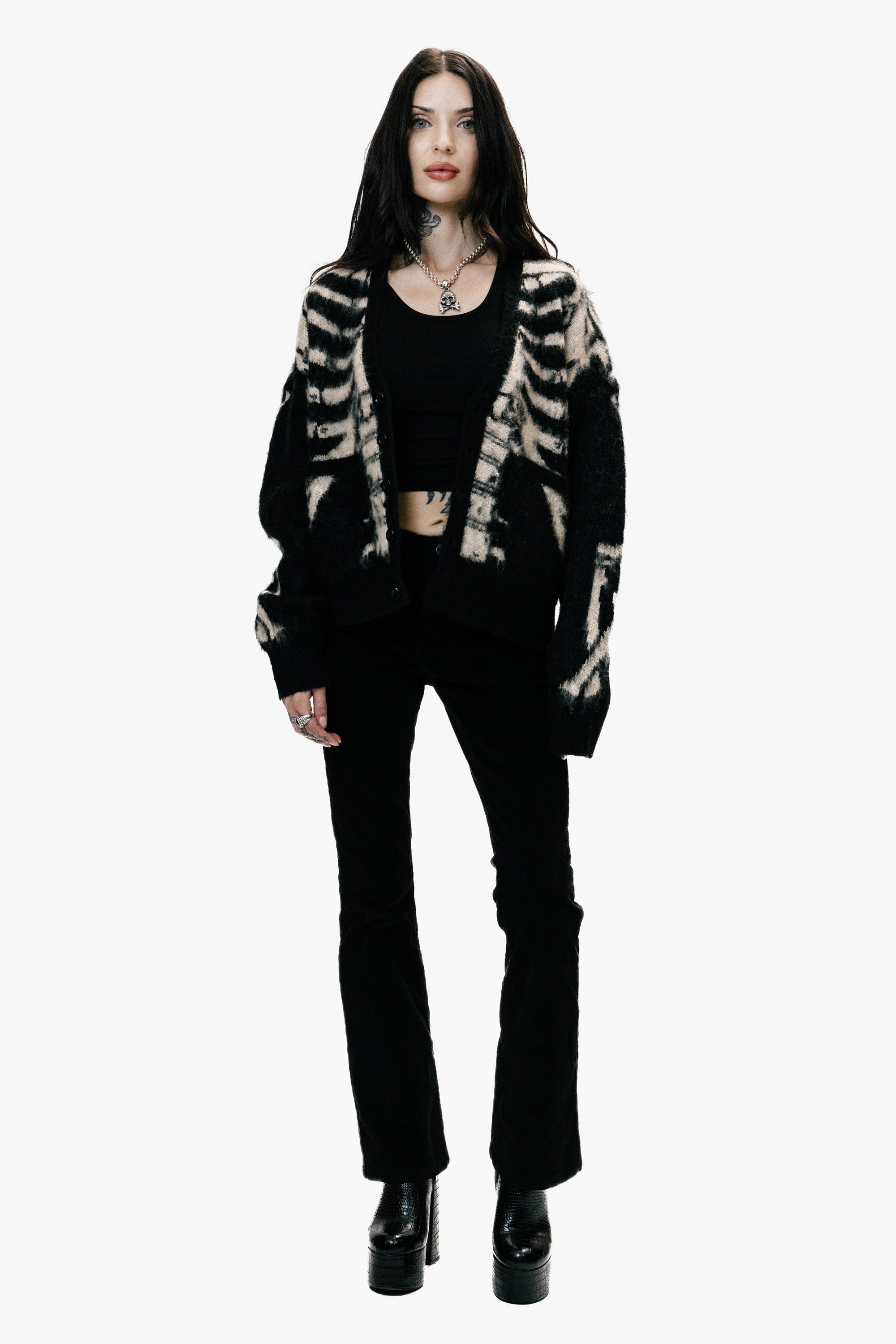 SKELETON OVERSIZED CARDIGAN - BLACK & BONE - WOMENS