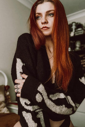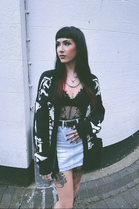 SKELETON OVERSIZED CARDIGAN - BLACK & BONE - WOMENS SKELETON OVERSIZED CARDIGAN - BLACK & BONE - WOMENS