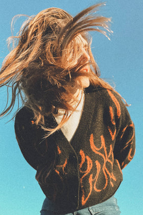 FLAME OVERSIZED CARDIGAN - RED - WOMENS FLAME OVERSIZED CARDIGAN - RED - WOMENS