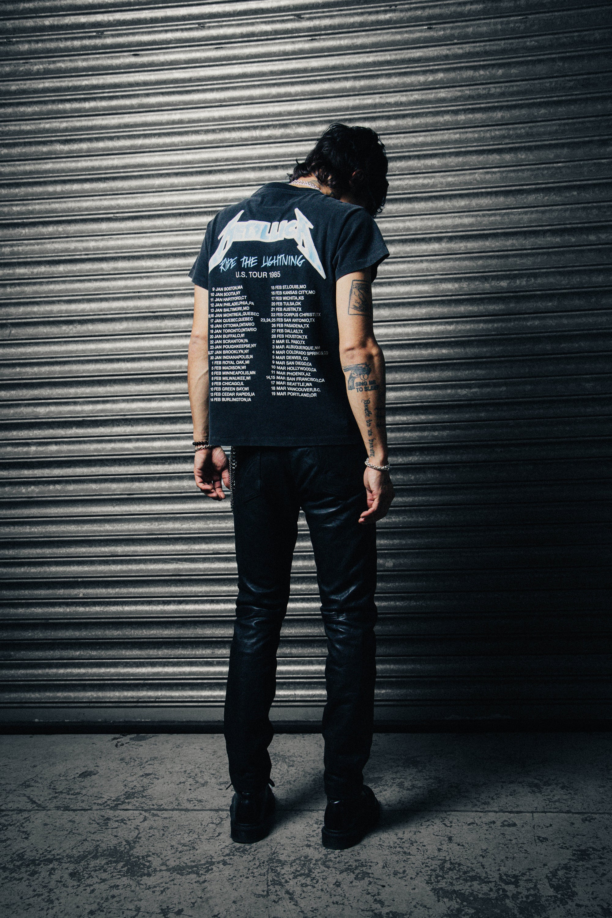 Our vintage inspired Metallica tee revives the Ride the Lightning US tour in true detail. Crafted from washed and distressed 100% cotton, it delivers the perfect broken in feel with authentic single stitch hems and our signature relaxed fit. Hand printed in our UK studio using vintage correct plastisol inks, the tee carries the electrifying Ride the Lightningtour graphic, a tribute to the band’s rise and the chaos of the 1984 stage.
