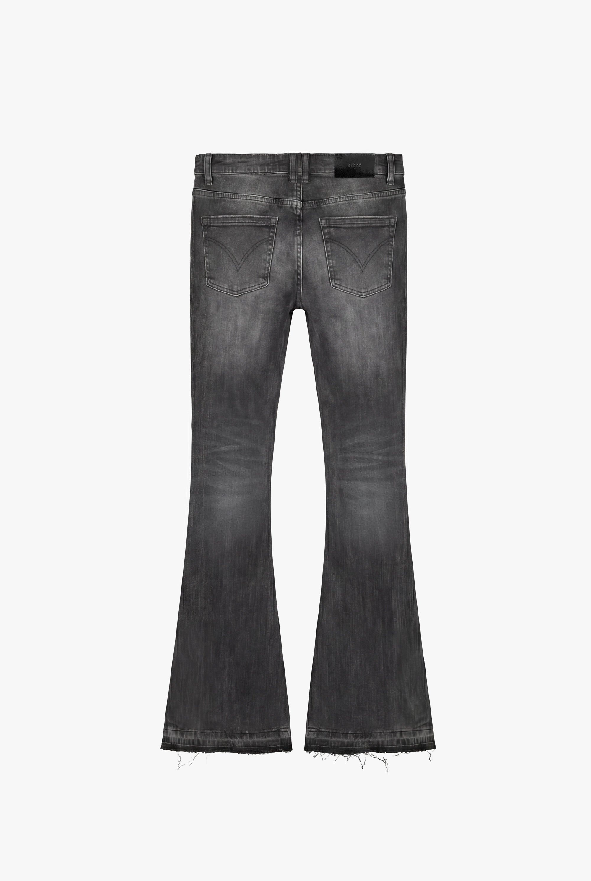 Slim fit flared jeans cut close through the hip and thigh, opening into a controlled 32cm Raw Edge ankle flare. Designed to create a long, sharp silhouette.