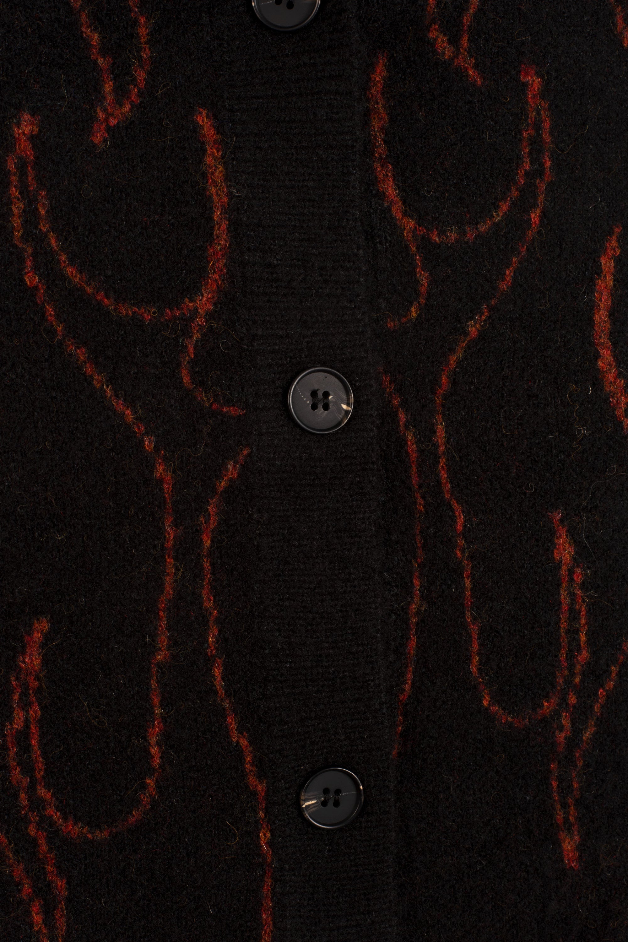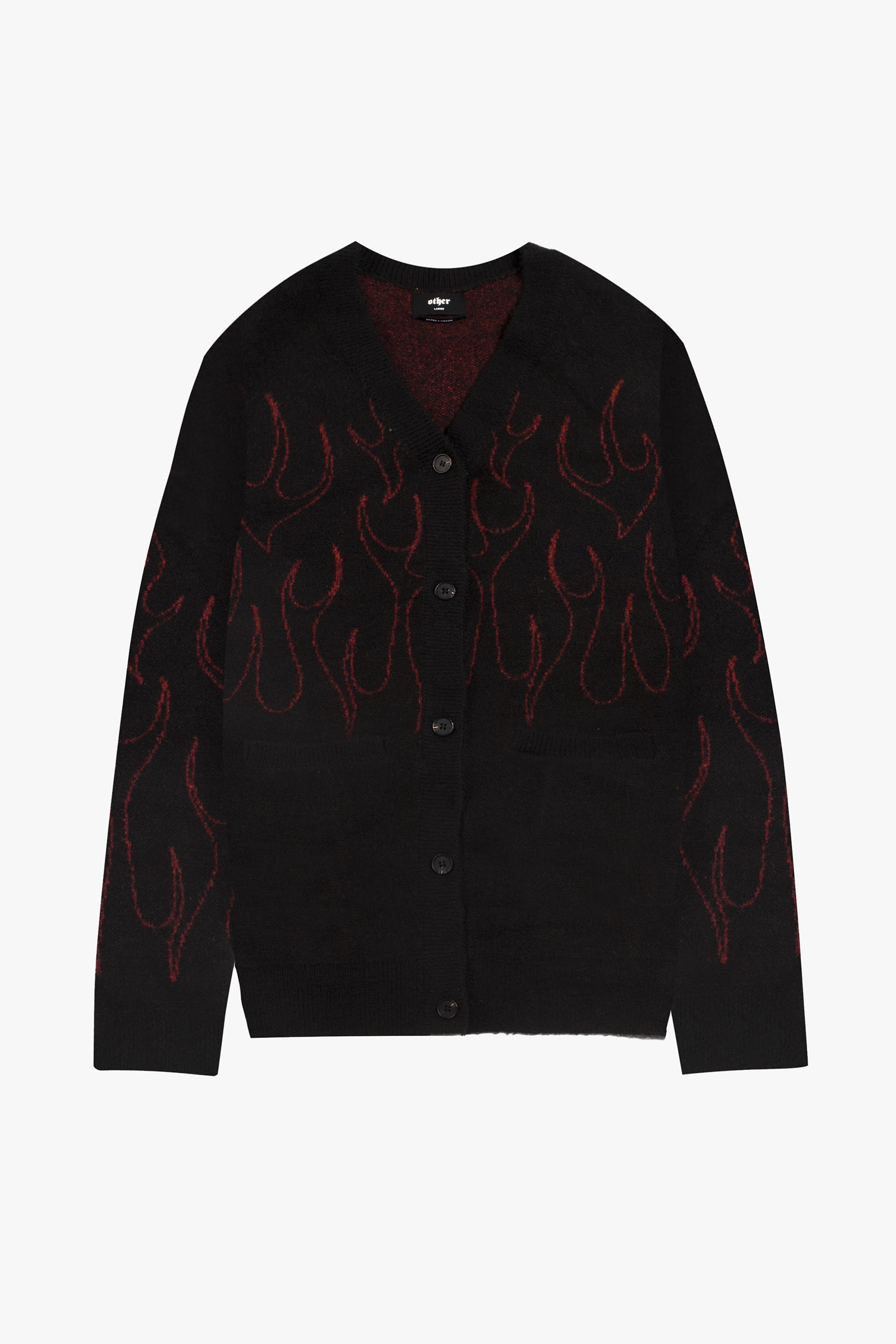 THE FLAME KNIT Oversized Cardigan is crafted from a brushed wool and mohair blend for a luxuriously soft, textured feel. Designed with front patch pockets and a slim placket,Featuring an all-over jacquard knit and ribbed cuffs.